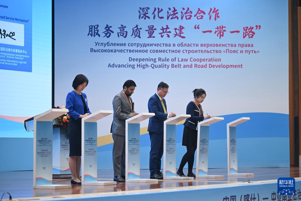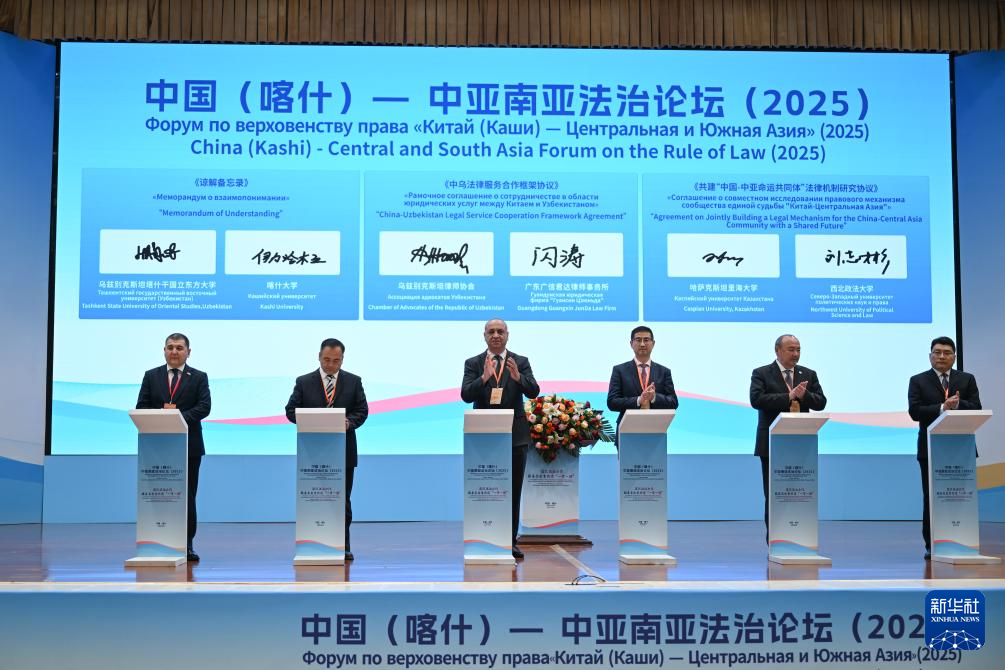 10-ئاينىڭ 30-كۈنى، شىنجاڭ قەشقەردە ئۆتكۈزۈلگەن جۇڭگو (قەشقەر) − ئوتتۇرا ئاسىيا جەنۇبىي ئاسىيا قانۇنچىللىق مۇنبىرى (2025) دە، ئەزىز مېھمانلار ھەمكارلىق كېلىشىمى ئىمزالاش مۇراسىمىغا قاتناشتى.