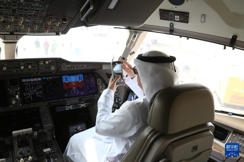 11-ئاينىڭ 17-كۈنى، ئەرەب بىرلەشمە خەلىپىلىكىنىڭ دۇبەي شەھىرىدە، تاماشىبىنلار 2025-يىللىق دۇبەي ئاۋىياتسىيە كۆرگەزمىسىدە جۇڭگو جەنۇب ئاۋىياتسىيەسىنىڭ C 919 تىپلىق ئايروپىلانىنى ئېكسكۇرسىيە قىلماقتا.